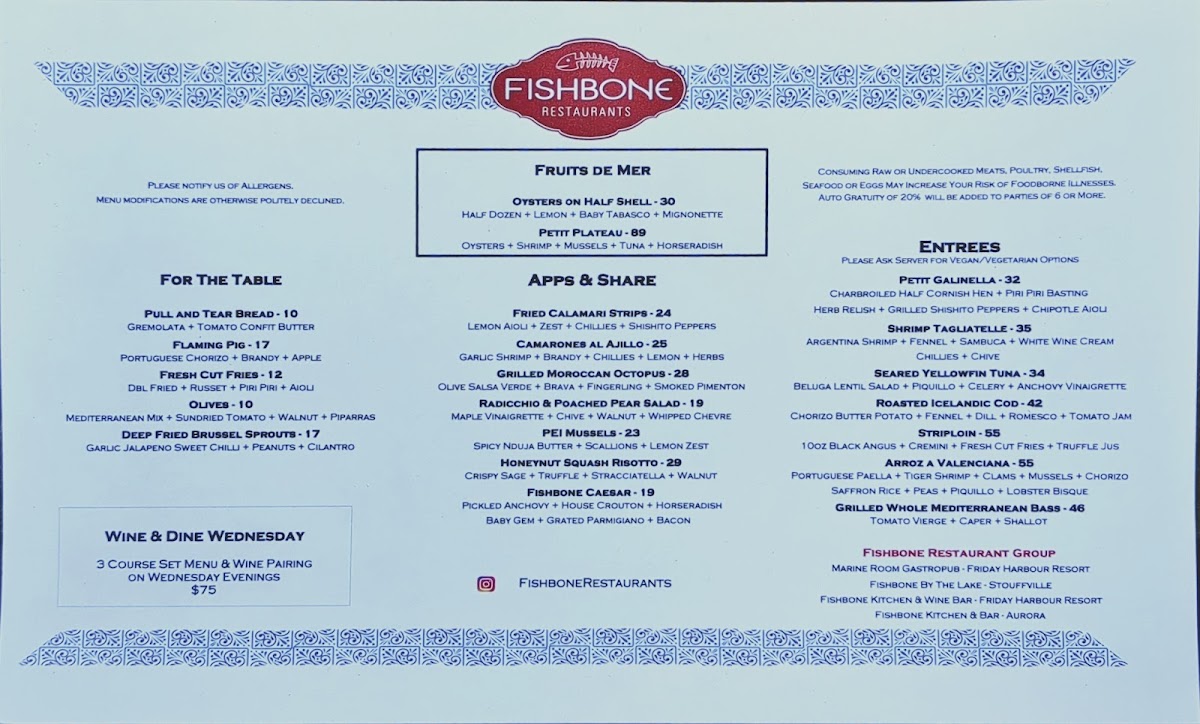 Welcome to Fishbone Kitchen Bar, a culinary gem located in Aurora, Ontario. Renowned for its exquisite menu, Fishbone elevates dining with an emphasis on fresh, flavorful ingredients. Patrons can indulge in a variety of shareable plates, from crispy brussel sprouts to fried cauliflower, complemented by fresh seafood dishes like sea bass and sea scallops. The highlight is undeniably the homemade tagliatelle with shrimp, a true crowd-pleaser.